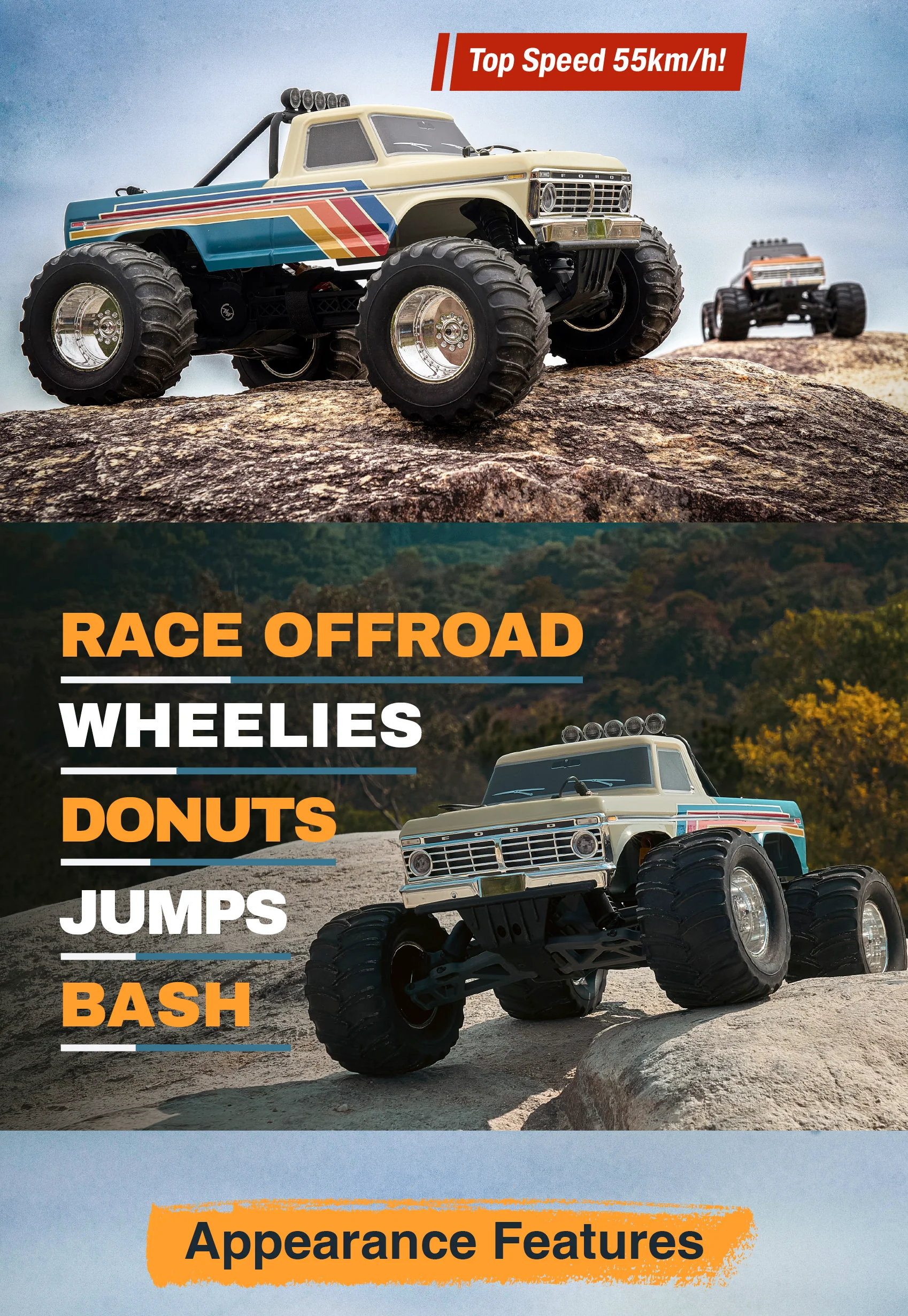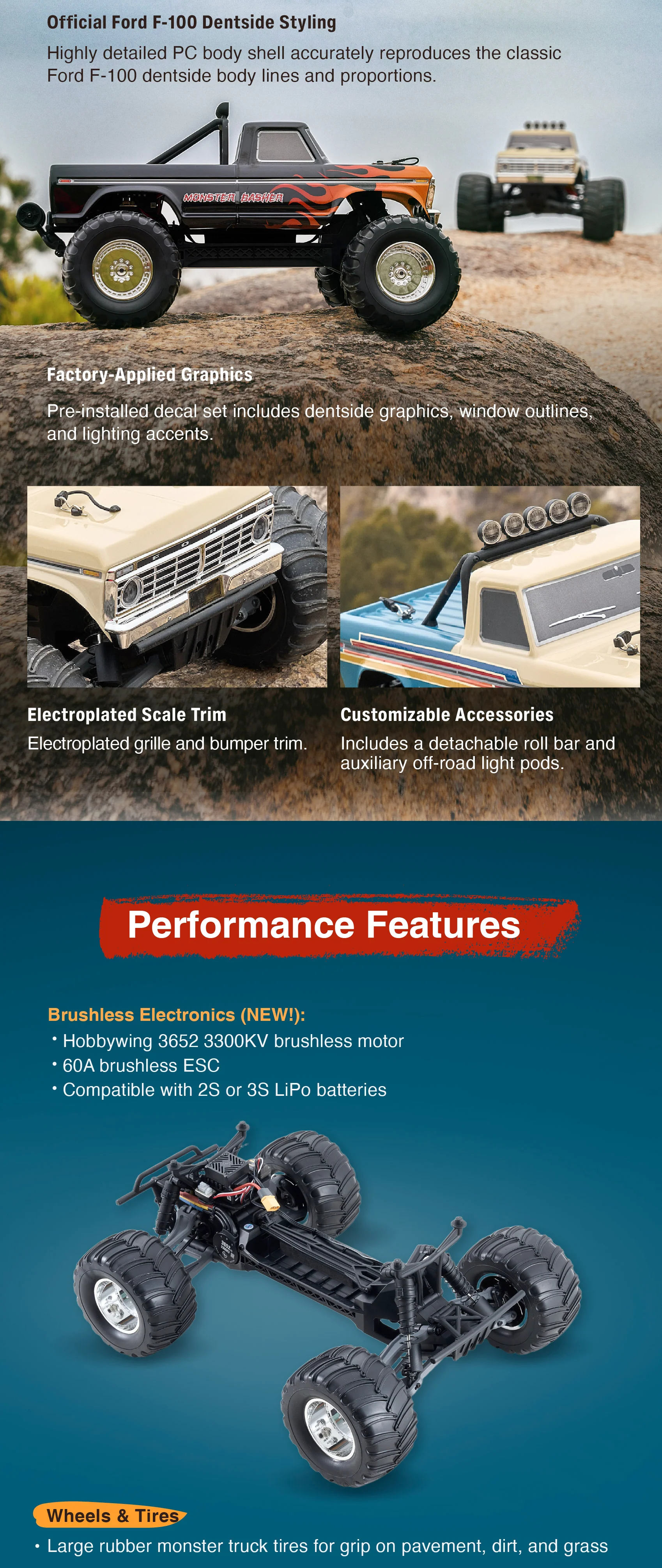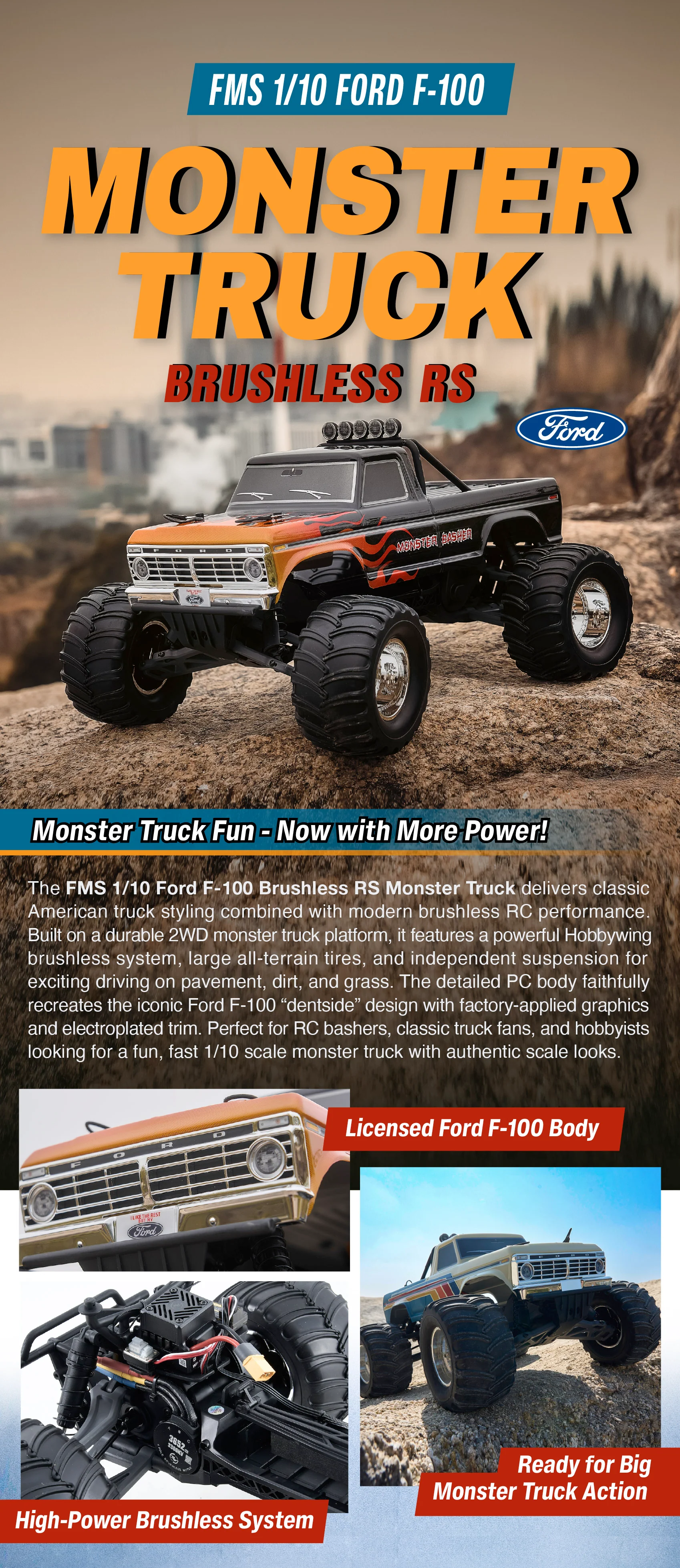 FMS 1/10 Ford F100 Monster Truck – Brushless RC, High-Speed Off-Road Truck